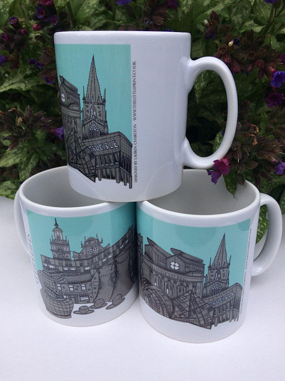 I have created this design of Sheffield City skyline, I’ve chosen to hand draw the most iconic Sheffield buildings from the famous Forge masters steel works to the Henderson's relish original house.